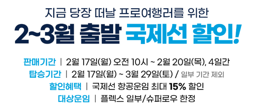 일 년에 딱 2번 최대 96% 할인된 금액으로 항공권을 구매할 수 있는 기회가 찾아왔습니다. 아는 사람만 저렴하게 구입할 수 있는 기회 누구보다 빠르게 혜택을 누리시기 바랍니다.