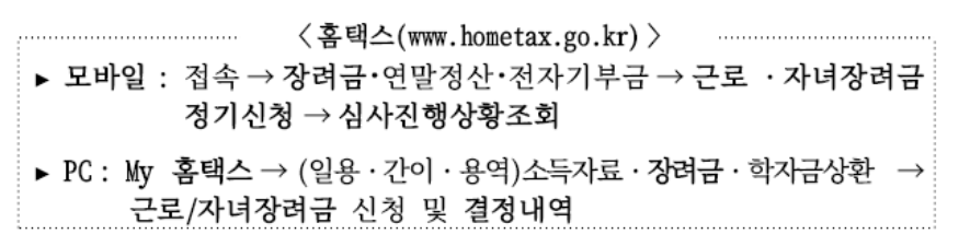 홈텍스(로그인) ➤ 상담·불복·고충·제보·기타 ➤ 탈세 제보 ➤근로·자녀장려금 부정수급 신고