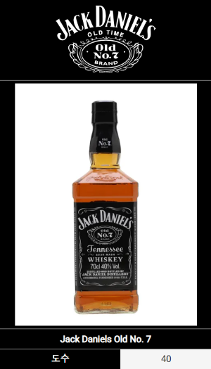 명실상부 잭 다니엘스를 상징하는, 가장 인기 있고 가장 많이 팔리는 아메리칸 위스키로, 가운데 적혀 있는 Old No.7이라는 문구 때문에 흔히 7년 숙성이라고 생각하지만 숙성기간과 무관합니다. 숙성 자체는 Old No.7 기준 최소 4년 입니다.