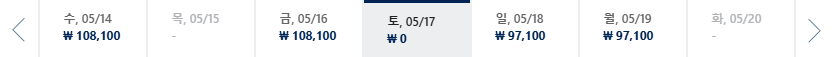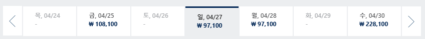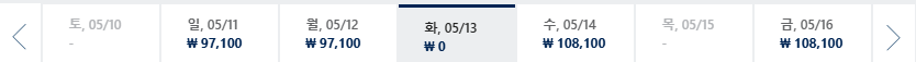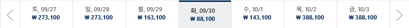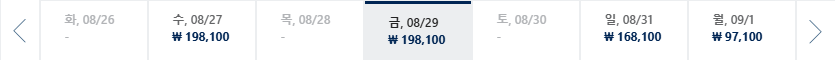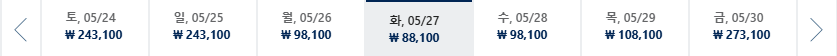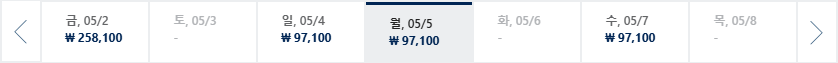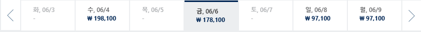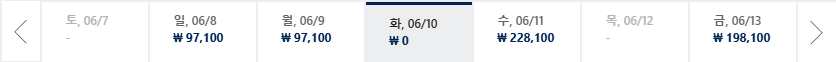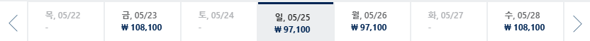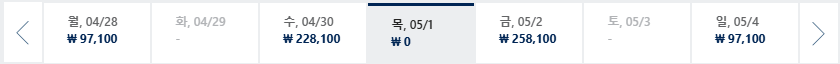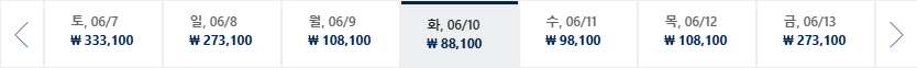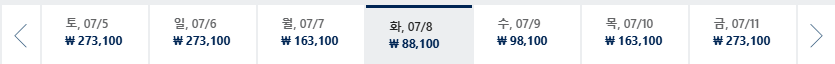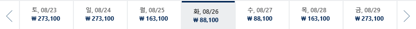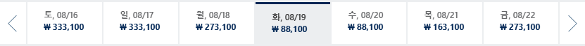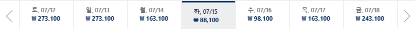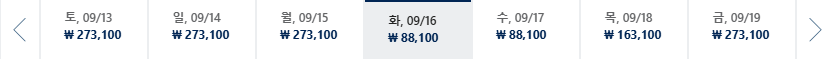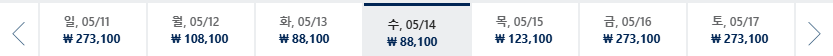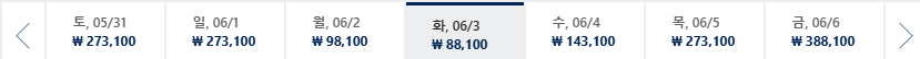* 일, 월, 수 일정이 가장 저렴하며 7~8월은 성수기로 최저가 찾기 어려움