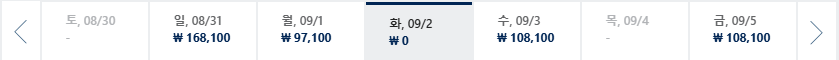 * 화, 수 일정이 가장 저렴하며 7~8월은 성수기로 최저가 찾기 어려움