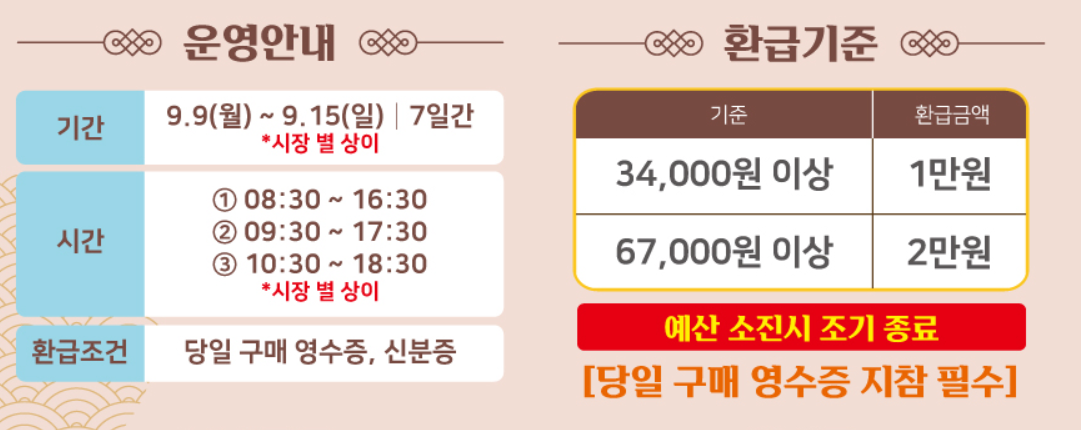 정부에서 온누리상품권 사용처를 확대하였으며, 9월은 온누리 상품권 할인율을 최대 15% 상향했고, 일정 금액이상 구입시 환급행사까지 하고 있습니다.