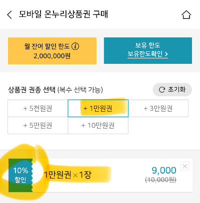 즉, 모바일 구매 200만원, 지류 200만원 구입 가능