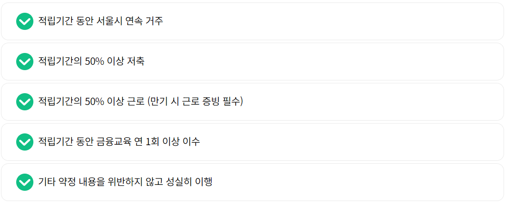 ■ 지원자격 : 서울시 거주자로 일하는 청년(만 18세~34세, 공고일 이전 1년간 3개월 이상 근로이력이 있는자 ) 중 본인 소득이 월 255만 원 이하면서, 부양의무자의 소득이 연간 1억 원 미만, 재산은 9억 원 미만인자