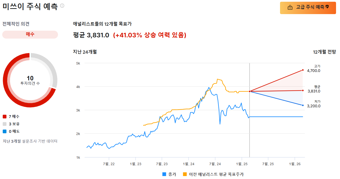 애널리스트들의 12개월 목표가는 평균 3,831.0엔으로, +41.03% 상승 여력이 있는 것으로 예측되고 있습니다.
