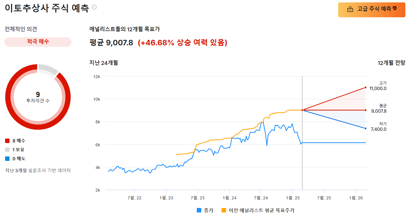 애널리스트들의 12개월 목표가는 평균 9,007.8엔으로, +46.68% 상승 여력이 있는 것으로 예측되고 있습니다.