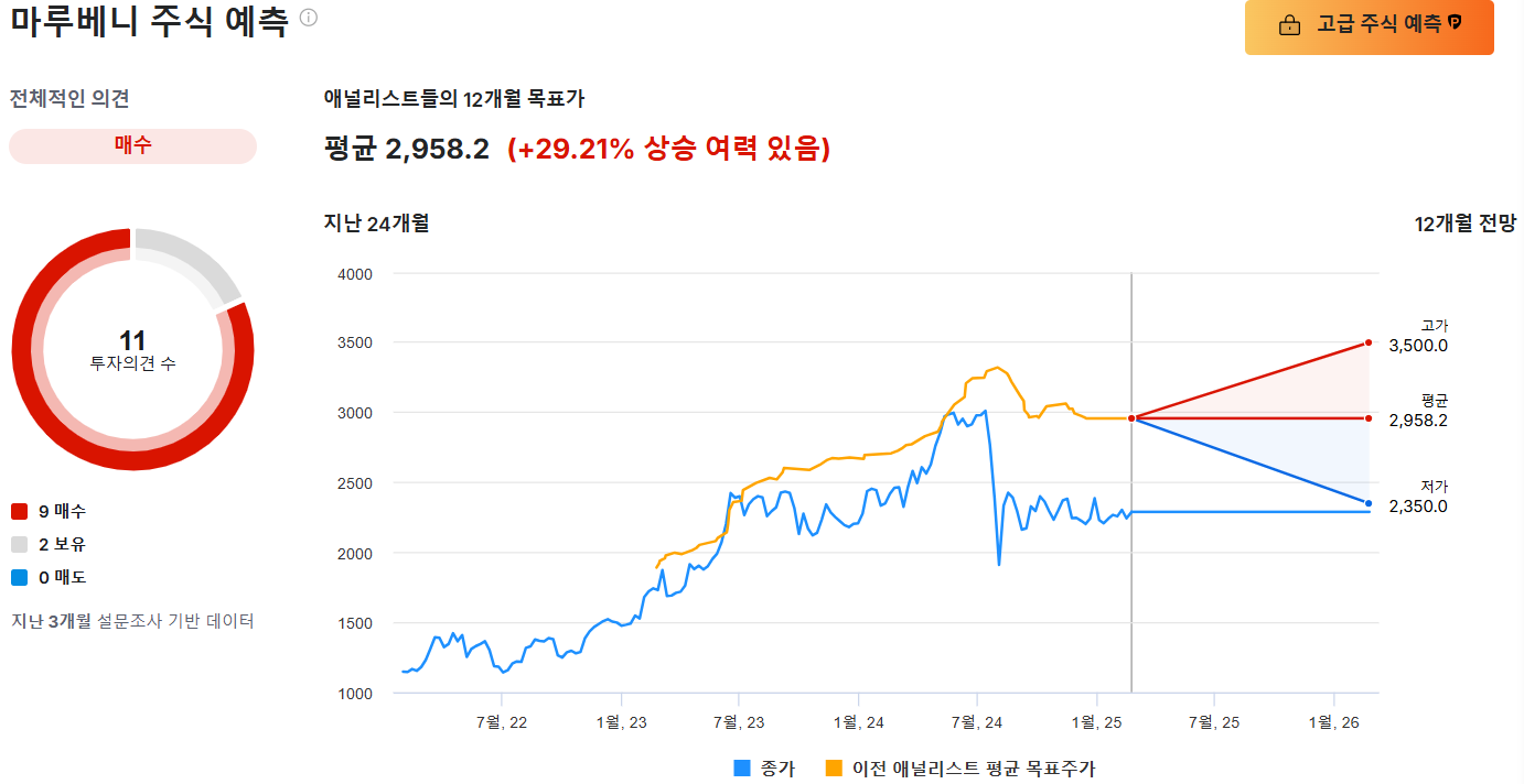 애널리스트들의 12개월 목표가는 평균 2,958.2엔으로, +29.21% 상승 여력이 있는 것으로 예측되고 있습니다.