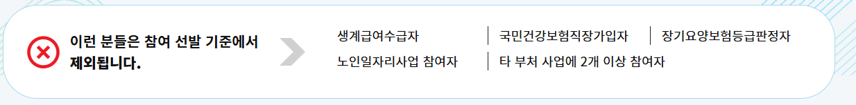 - 노노케어, 취약계틍지원, 공공시설 봉사, 경륜전수 활동