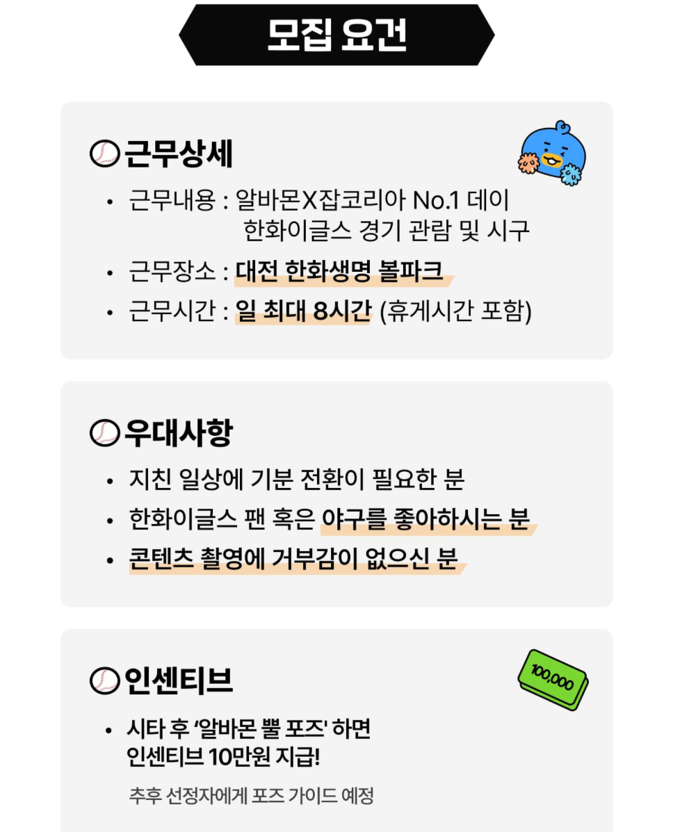 한화이글스가 알바몬과 함께 시타 아르바이트를 진행합니다. 야구 팬들에게 특별한 경험을 제공하는 이색알바가 관심 받고 있는데, 한화 팬이라면 무조건 신청해야하는 시타알바 신청 방법을 알려드리겠습니다.